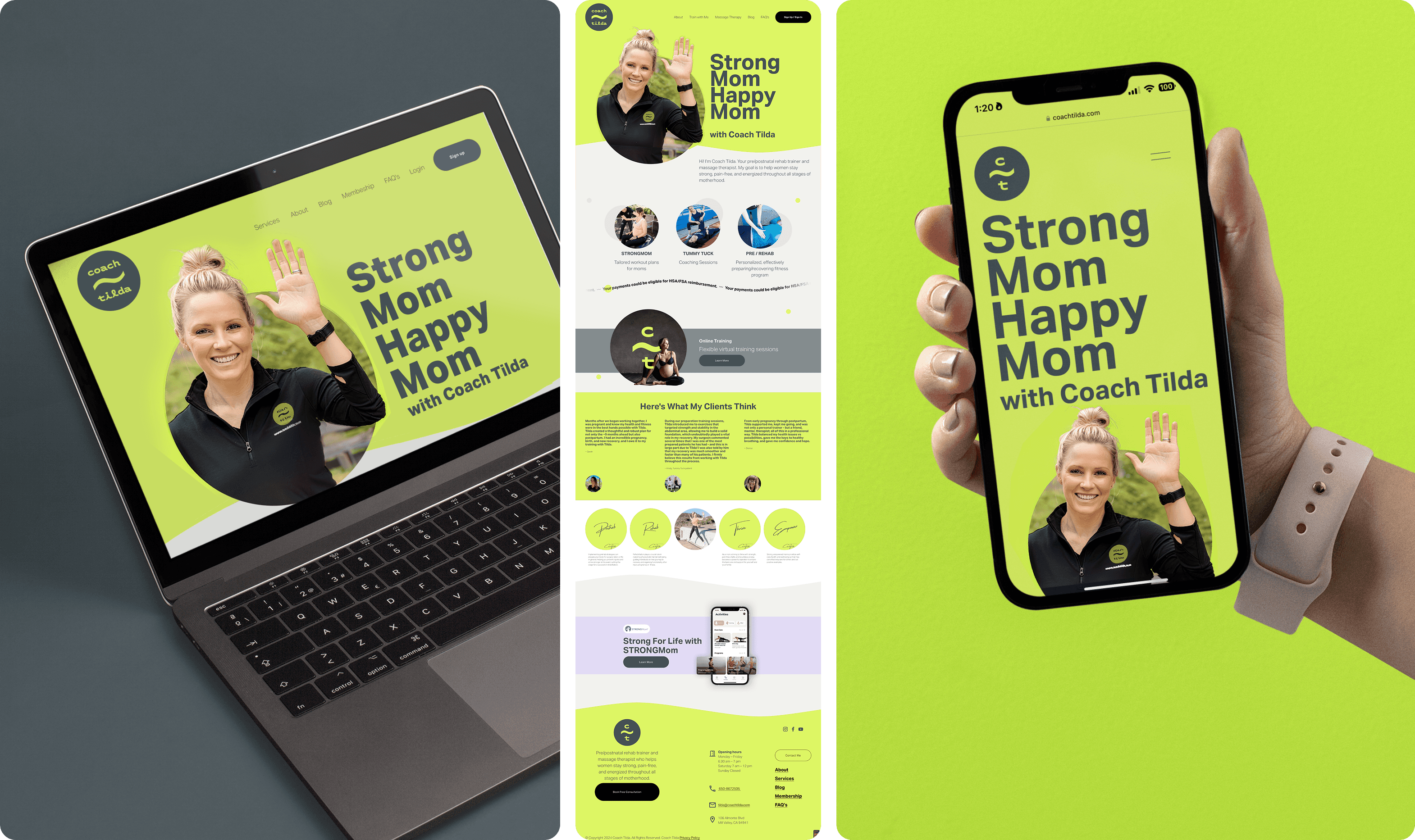 Coach Tilda’s work spans pre/postnatal fitness, massage therapy, rehab, and recovery, which meant the site had to do a lot of heavy lifting. The challenge was to organize multiple services, communicate deep expertise without overwhelming people, and create a brand experience that felt both credible and human. We helped shape a digital presence that made the offer easier to understand, the trust signals easier to feel, and the next step easier to take.